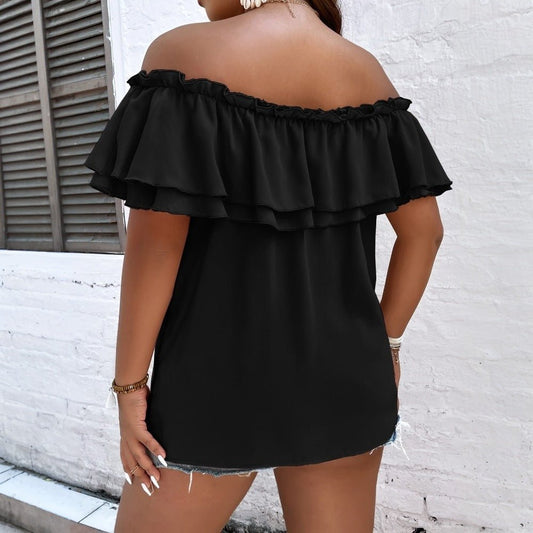 Curvy Women Off Shoulder Ruffled Top with Bow