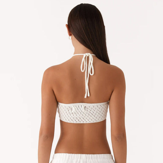 Spring Women Sexy Solid Color Halter Lace up Cutout Knitted Camisole