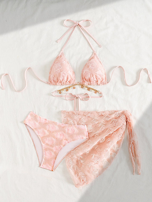 Women's High-Waisted, Push-Up, Three-Piece Bikini