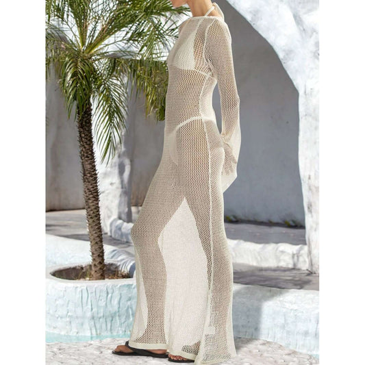 Openwork Backless Flare Sleeve Cover-Up
