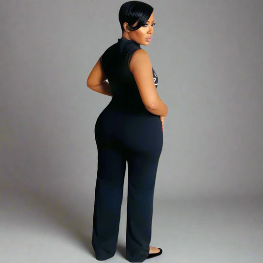 Snakeskin Cutout Mock-Neck Jumpsuit