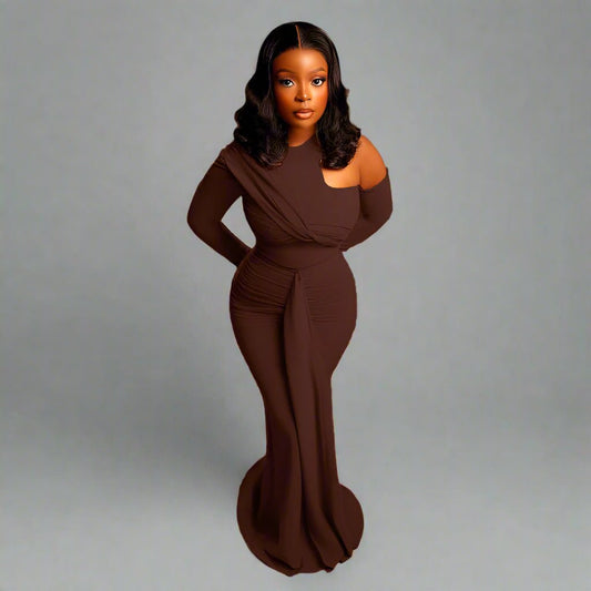 Sultry Cutout Ring Detail Maxi Dress – Coffee