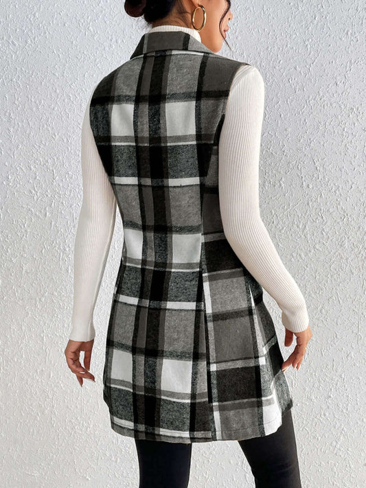 Plaid Button Up Vest Coat