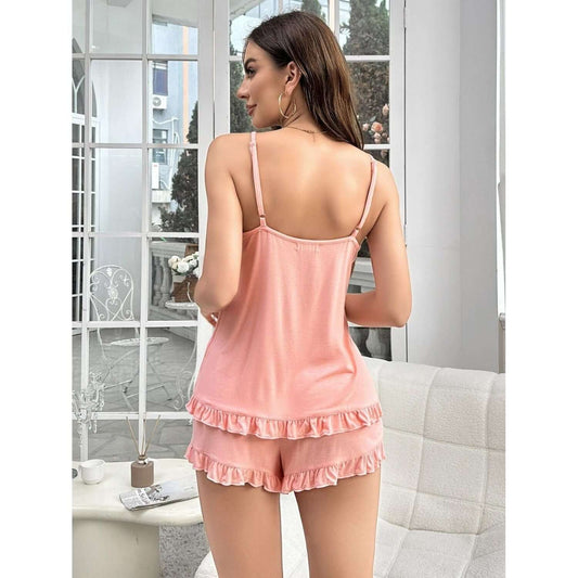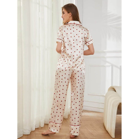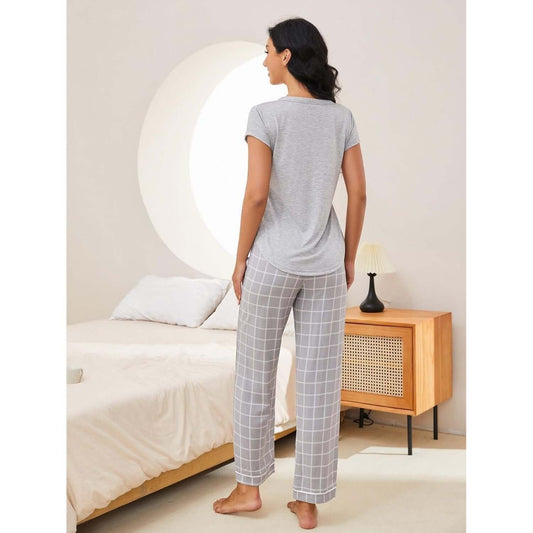 Women's V-Neck Short Sleeve Plaid Pajama Set