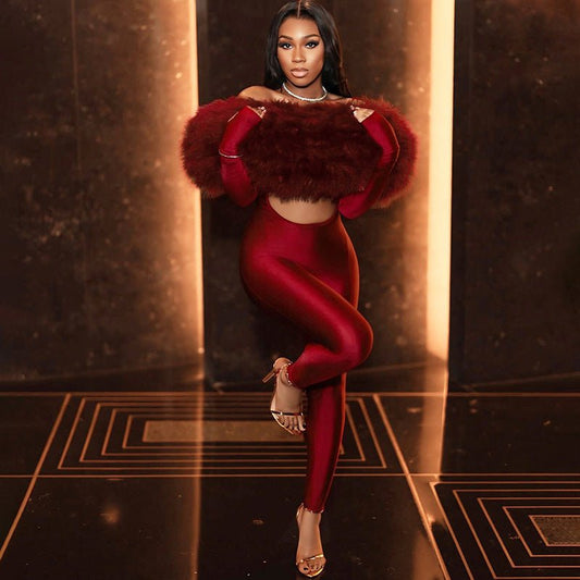 Feather Fantasy Off-Shoulder Cutout Jumpsuit