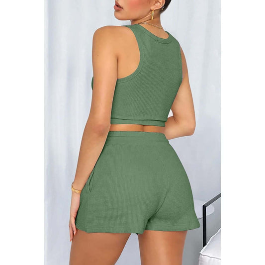 Scoop Neck Sleeveless Vest and Shorts Set
