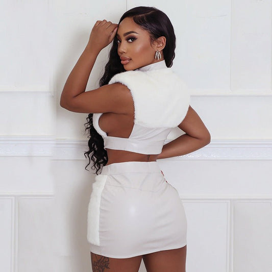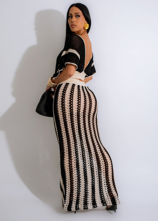 Sexy V-Neck Striped Knitted Maxi Skirt Set