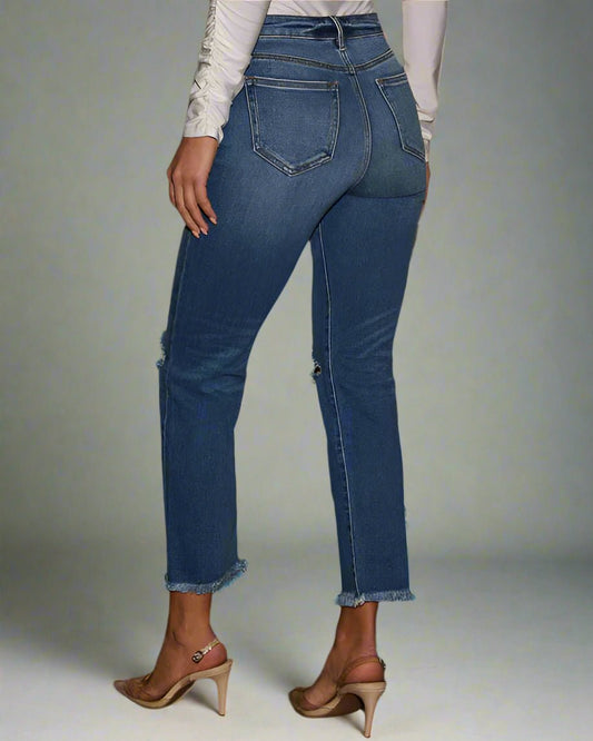 Washed Frayed Slim High Waist Elastic Skinny Jeans
