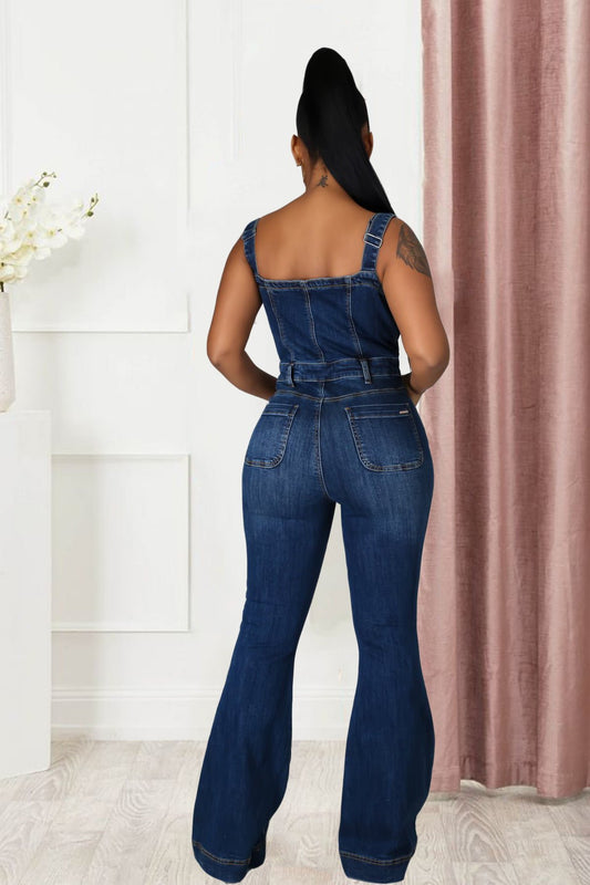 Off Shoulder Slightly Flared Denim Jumpsuit