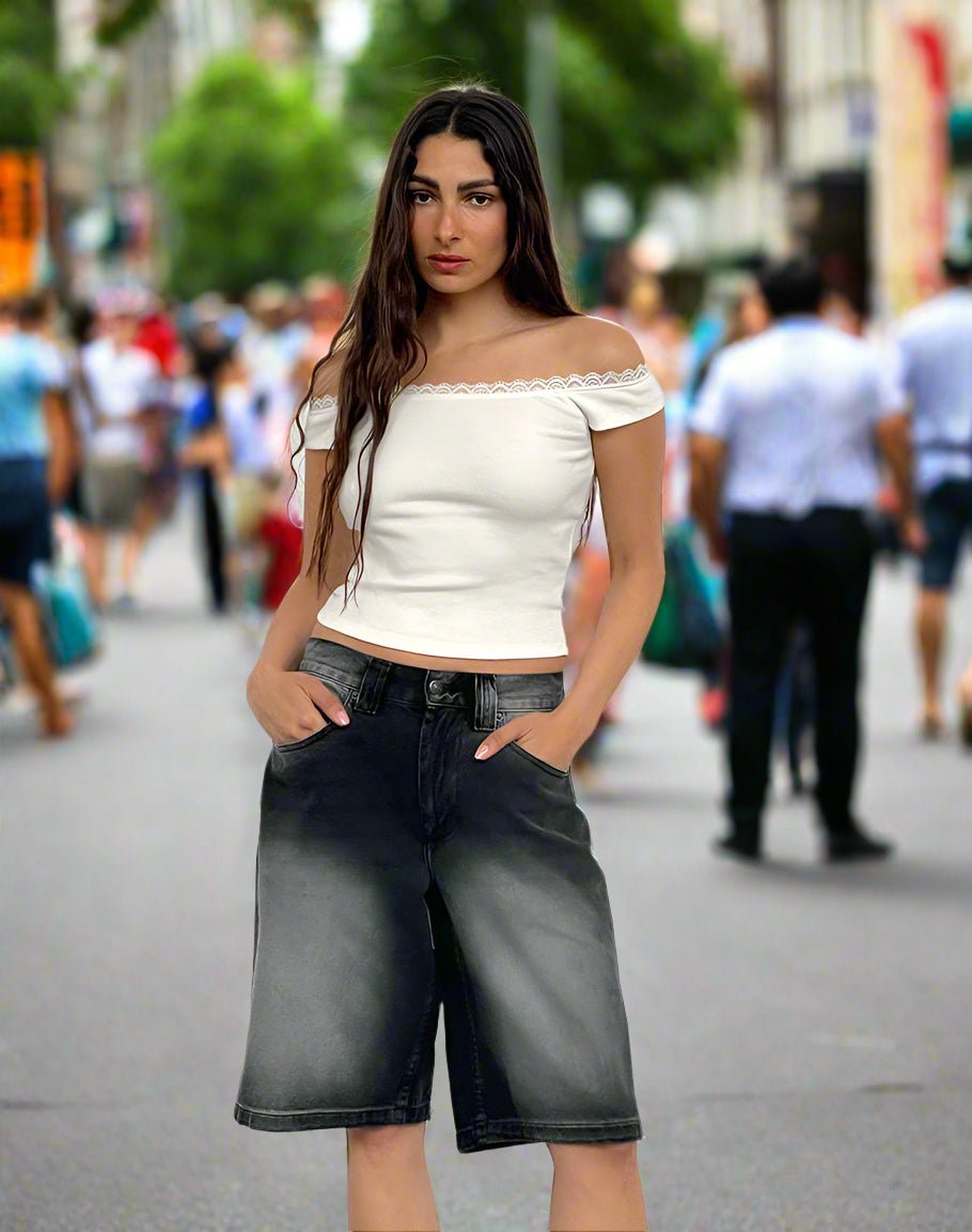 Low Rise Denim Bermuda Shorts